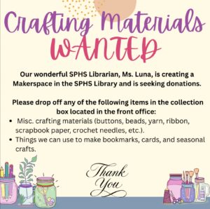 sphs library Makerspace seeking crafting materials December 9, 2025 sphs library Makerspace Read More »